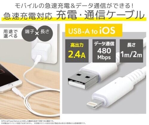 充電・通信ケーブル USB-A to iOS 1m 急速充電ケーブル