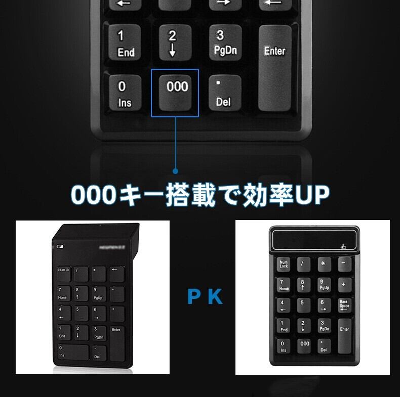 000キー搭載 ワイヤレス テンキー Bluetooth接続パソコンPC ノートパソコン Windows XP/WIN7/WIN8/VISTA